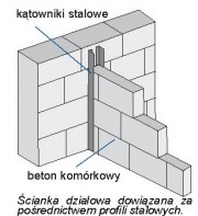 Beton komórkowy - używa się elementów o gr. 6; 8; 11,5 lub 12 cm oraz bloczków o gr. 18 cm. Ścianki muruje się zwykłymi zaprawami cementowo-wapiennymi lub cienkowarstwowymi zaprawami klejowymi. Ściany działowe można dowiązywać do konstrukcyjnych tak samo, jak ściany z cegieł, czyli na strzępia, metodą "na dotyk" z zastosowaniem łączników ze stali nierdzewnej oraz z użyciem metalowych profili.